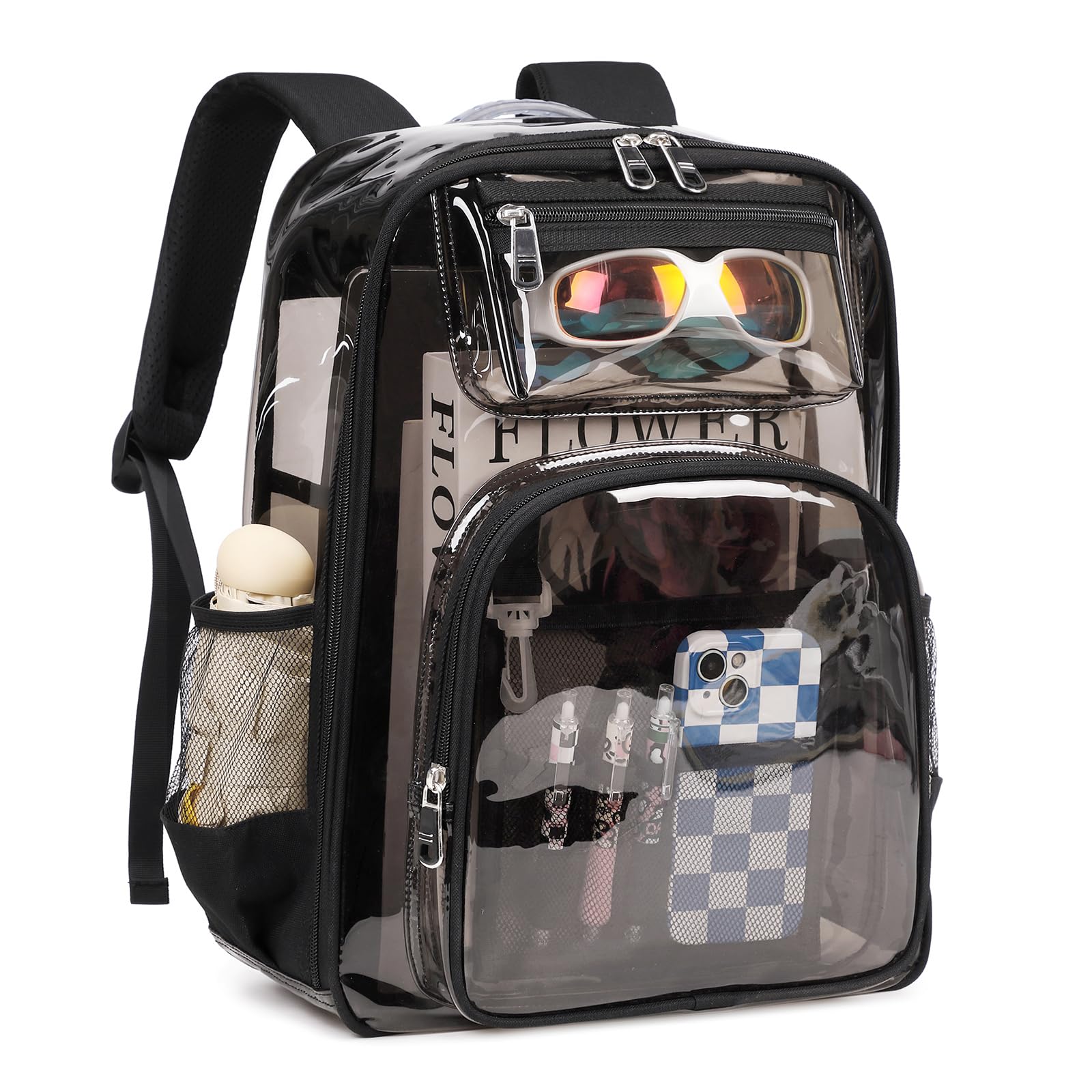 Soda Candy Clear Backpack Heavy Duty TPU Transparent Backpack Stadium Approved Large Waterproof Clear Book Bag Quick Security Check See Through Backpack with Reinforced Straps