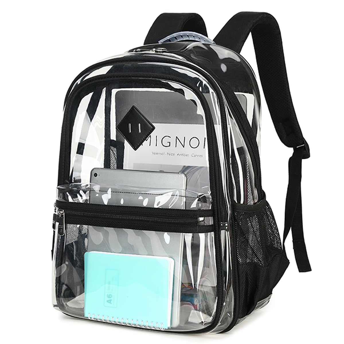 Soda Candy Large Clear Backpack Heavy Duty Triple Compartments Waterproof PVC Transparent Backpacks See Through Clear Bookbags for Teen Women Men for Stadium Events College Work Festival